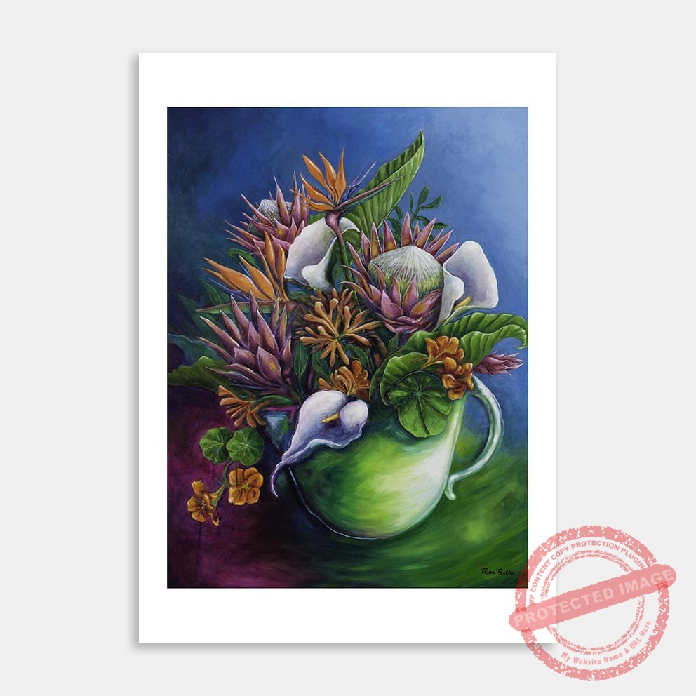 Rina Botha is a contemporary painter whose work celebrates abundance, femininity, and the emotional resonance of nature. She blends vibrant colour, expressive form, and subtle surrealism to create paintings that feel both intimate and alive. There’s a slightly dreamlike quality to her paintings, where everyday natural elements feel more alive and full of energy.