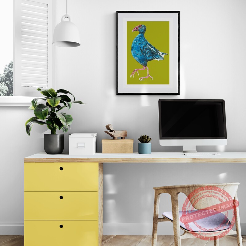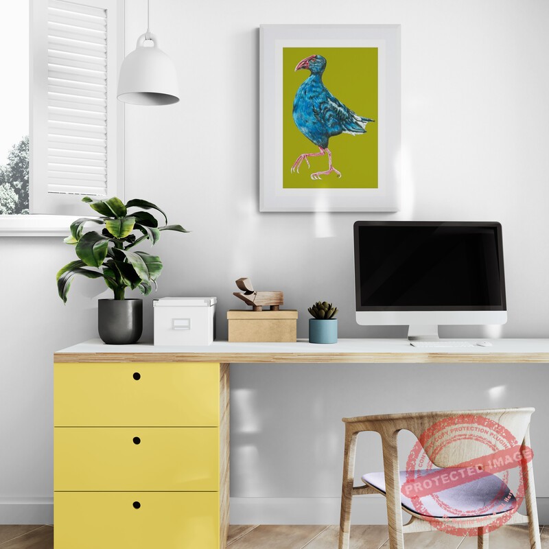 Perky Pukeko features a charming Pukeko strolling along in search of a friend. The original was painted using acrylic paint and Indian ink pen and has been digitally signed.